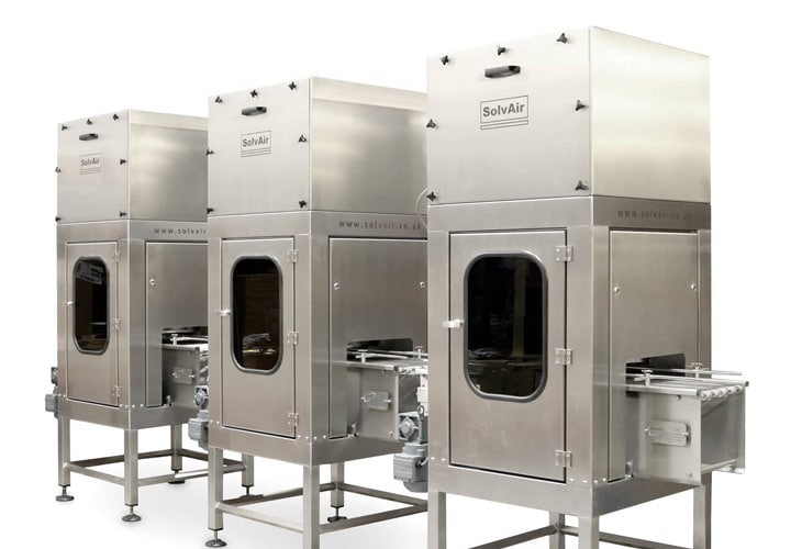 Séchage, nettoyage et soufflage flexibles adaptés au traitement des produits alimentaires frais, congelés, cuits et réfrigérés. Ligne de production garantie sans danger pour les aliments.